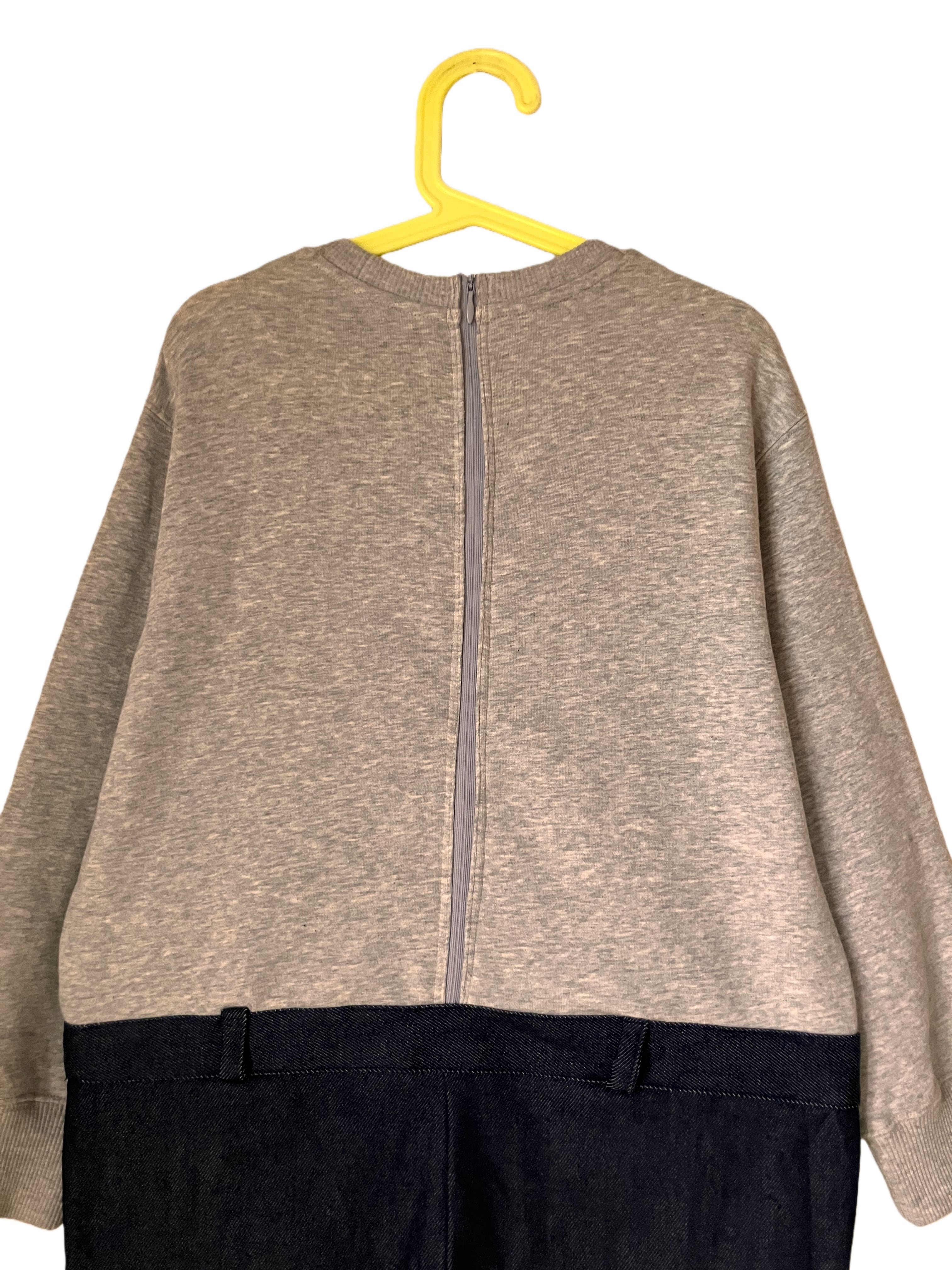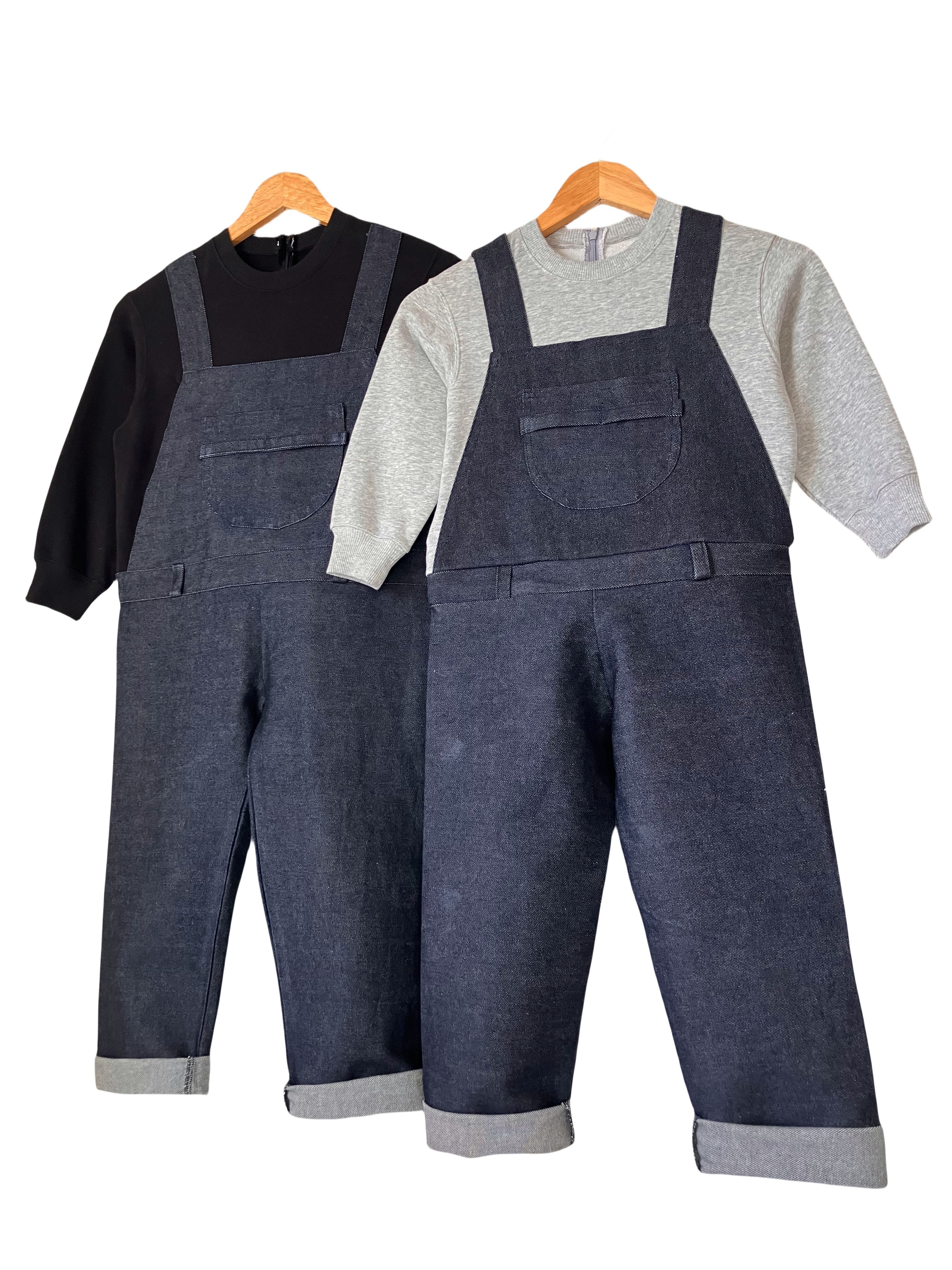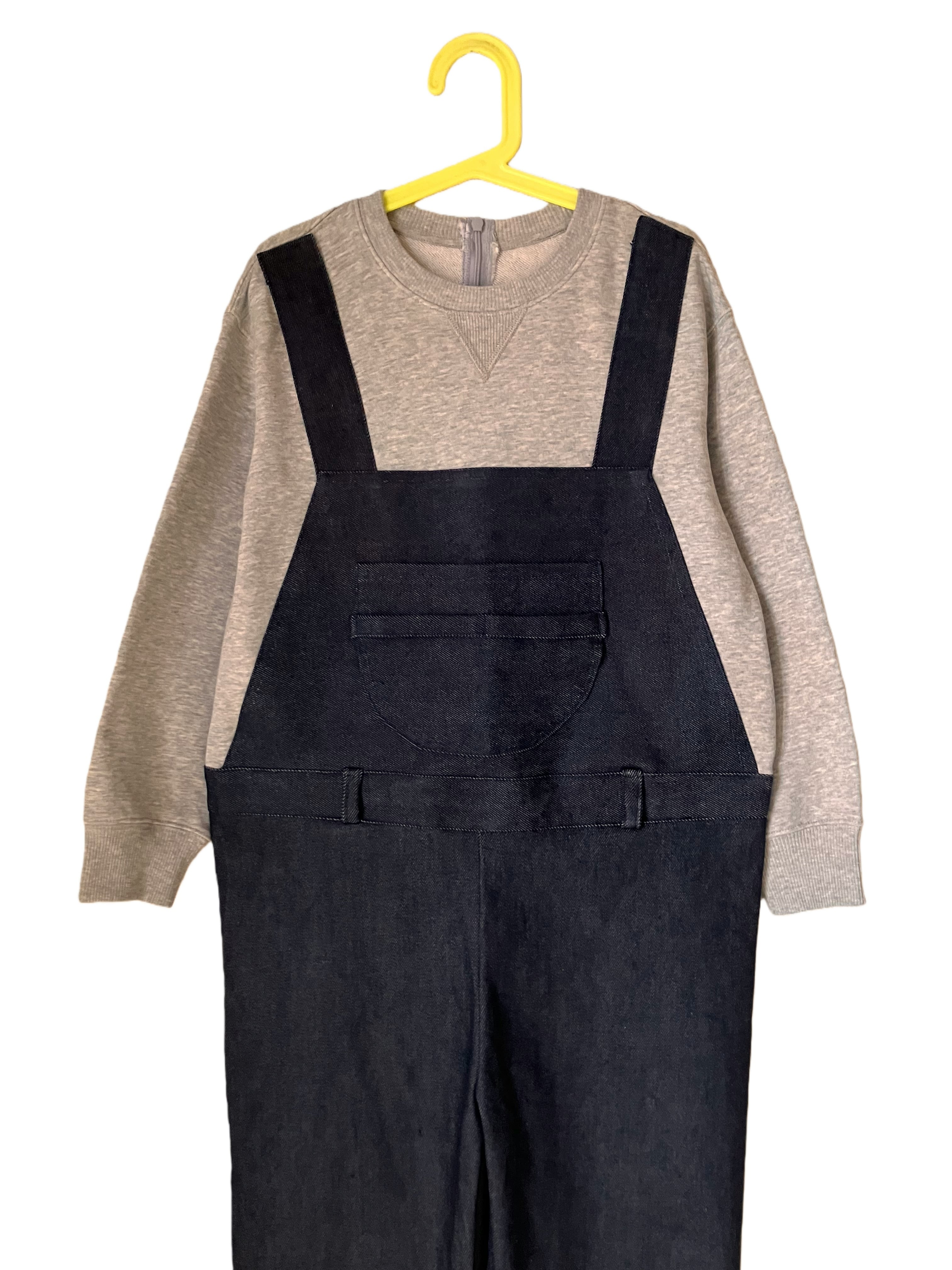 スウェットとオーバーオールを縫い付け一体化する事で、物理的に下半身をさわれないようにしました。