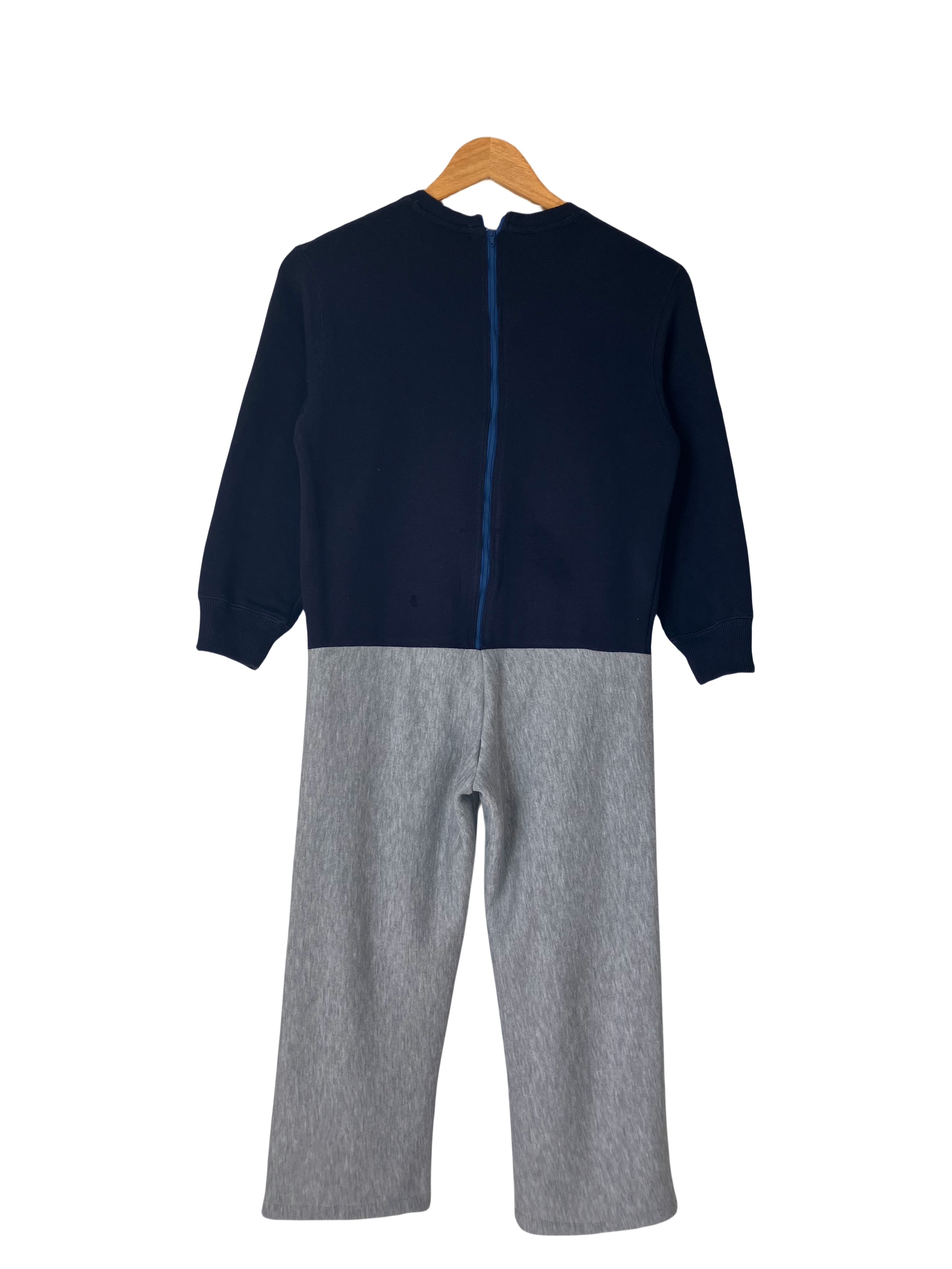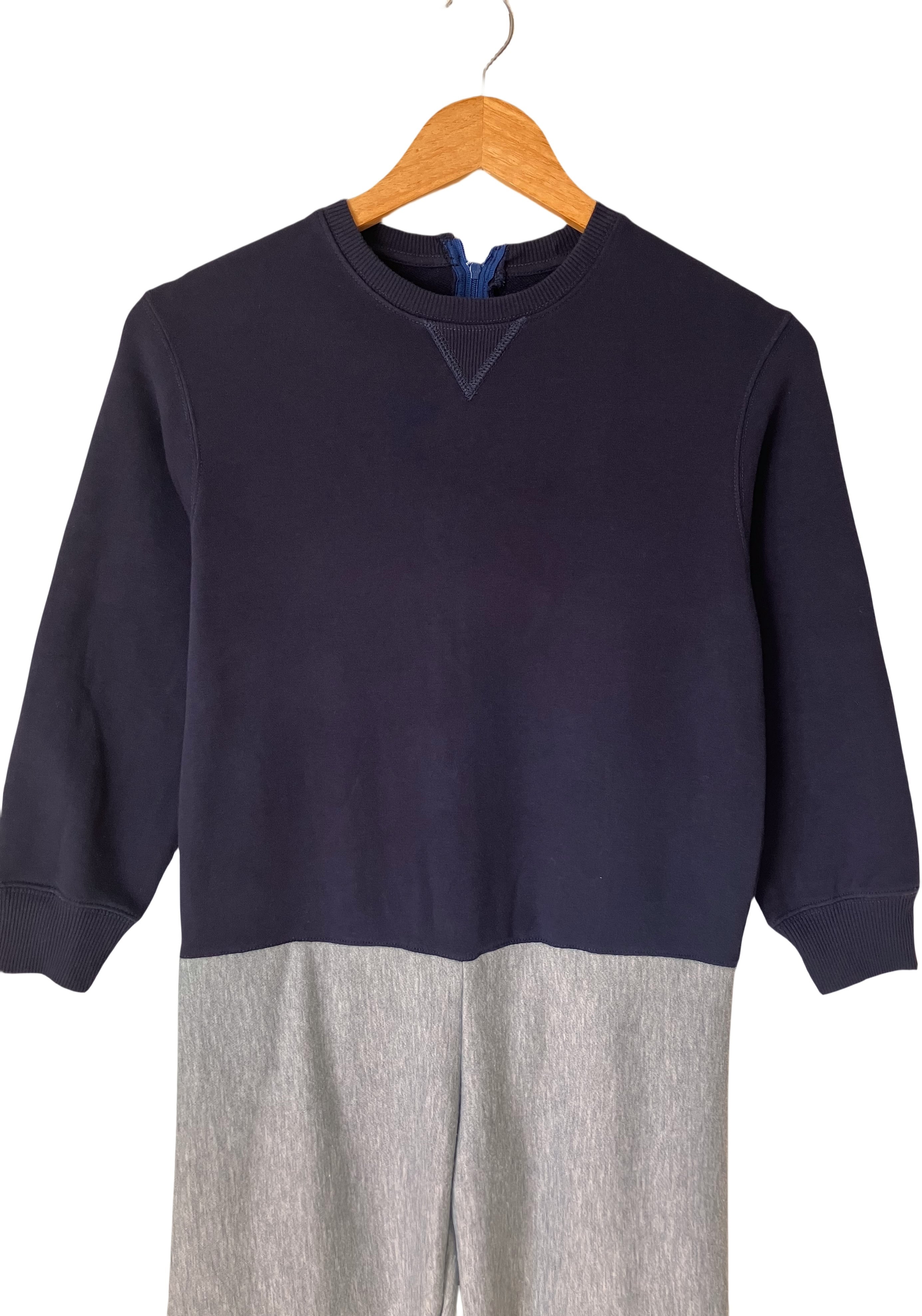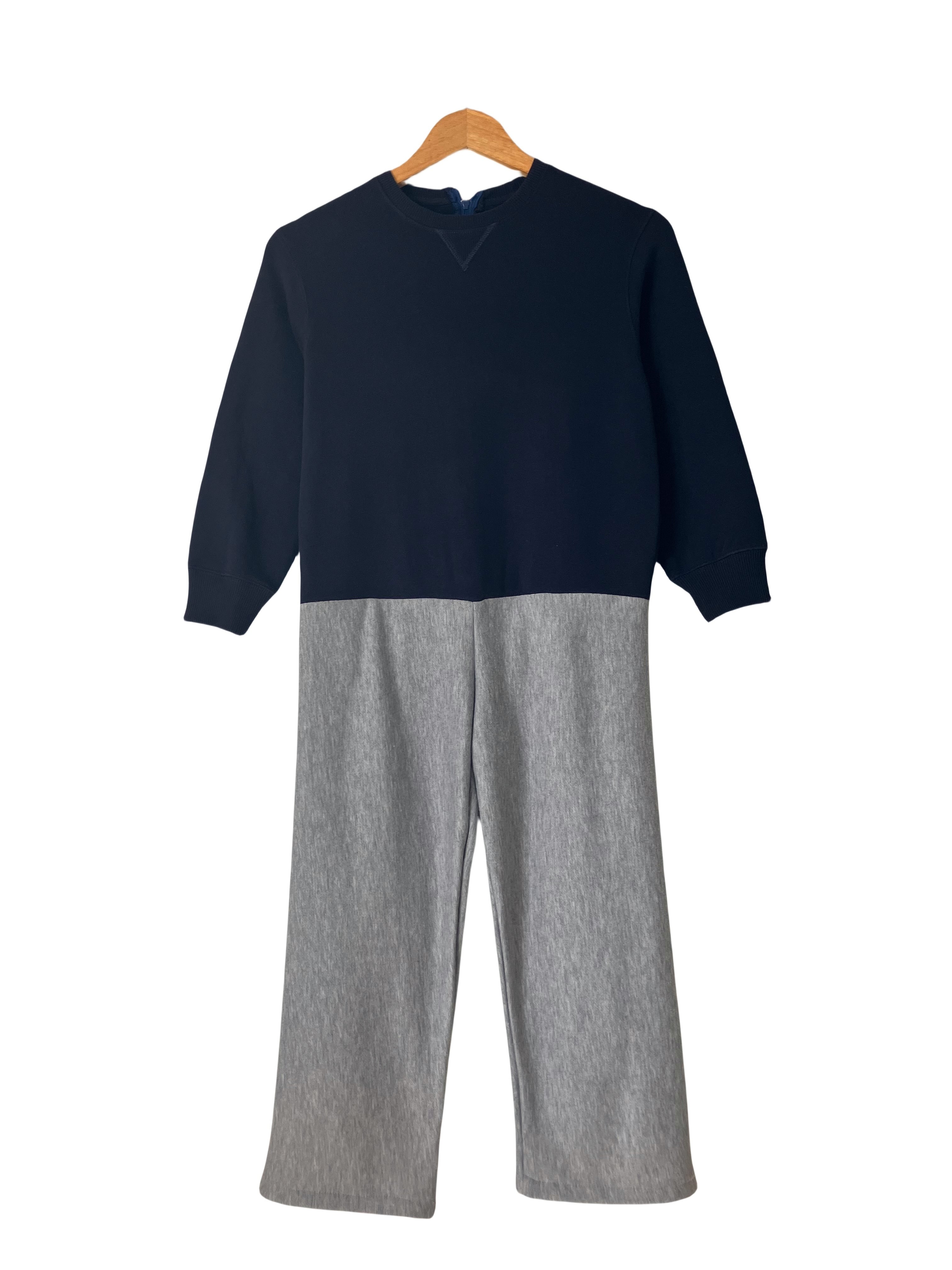 スウェットとスウェットズボンを縫い付け一体化し、背中にファスナーを付け物理的に脱げないように。