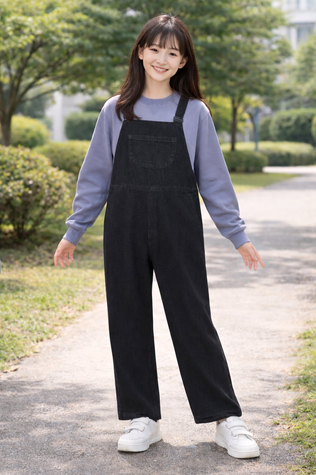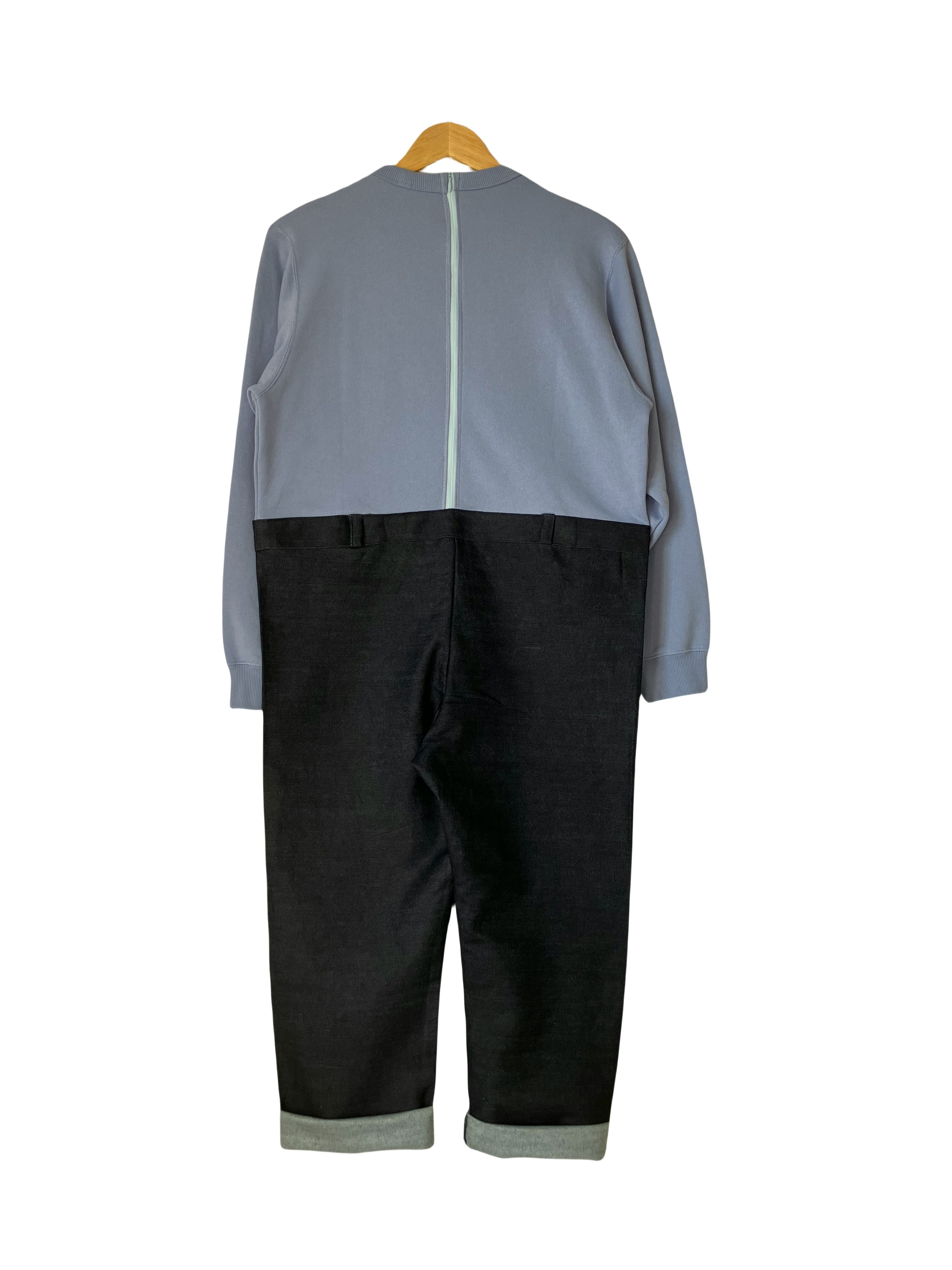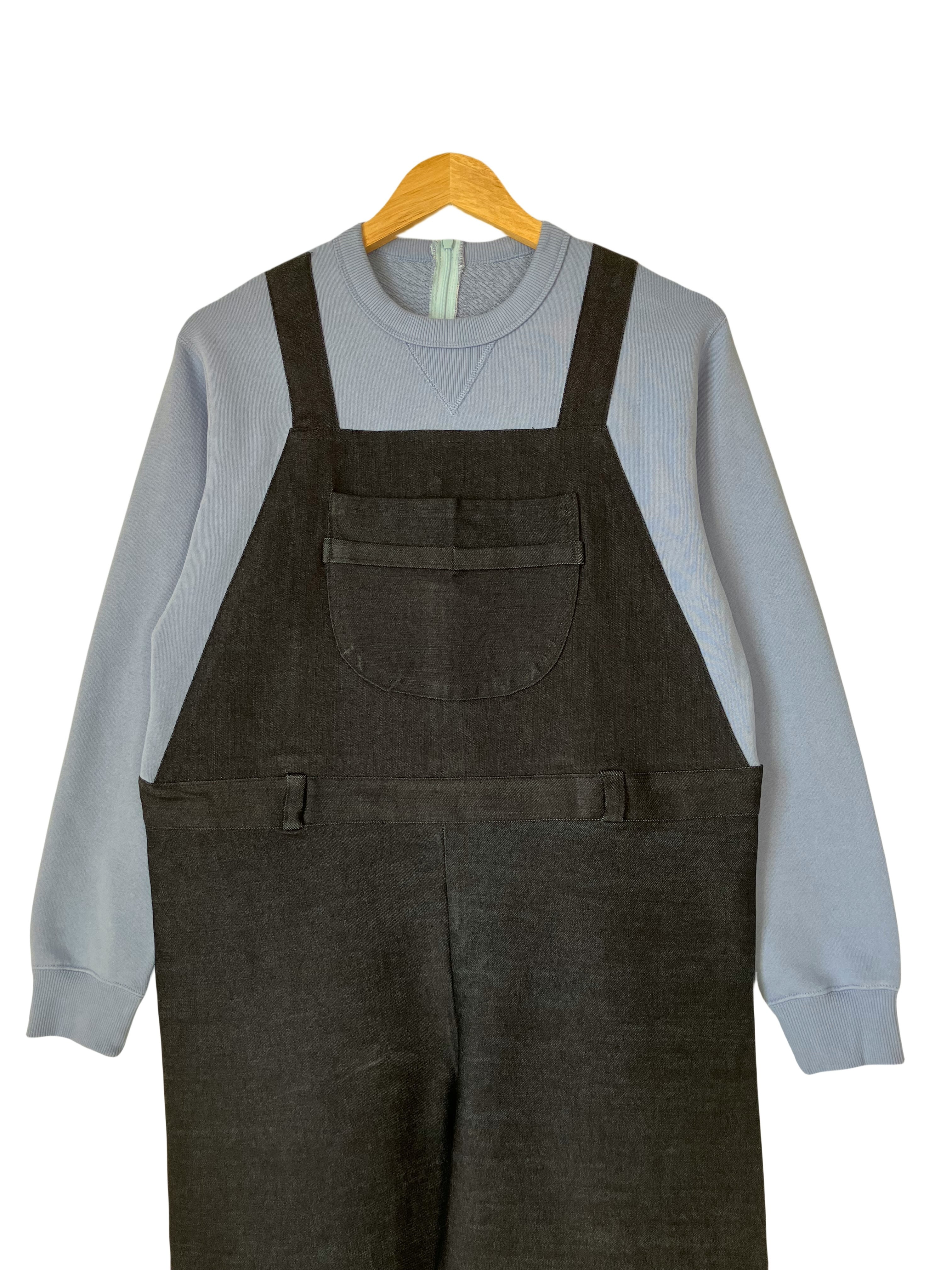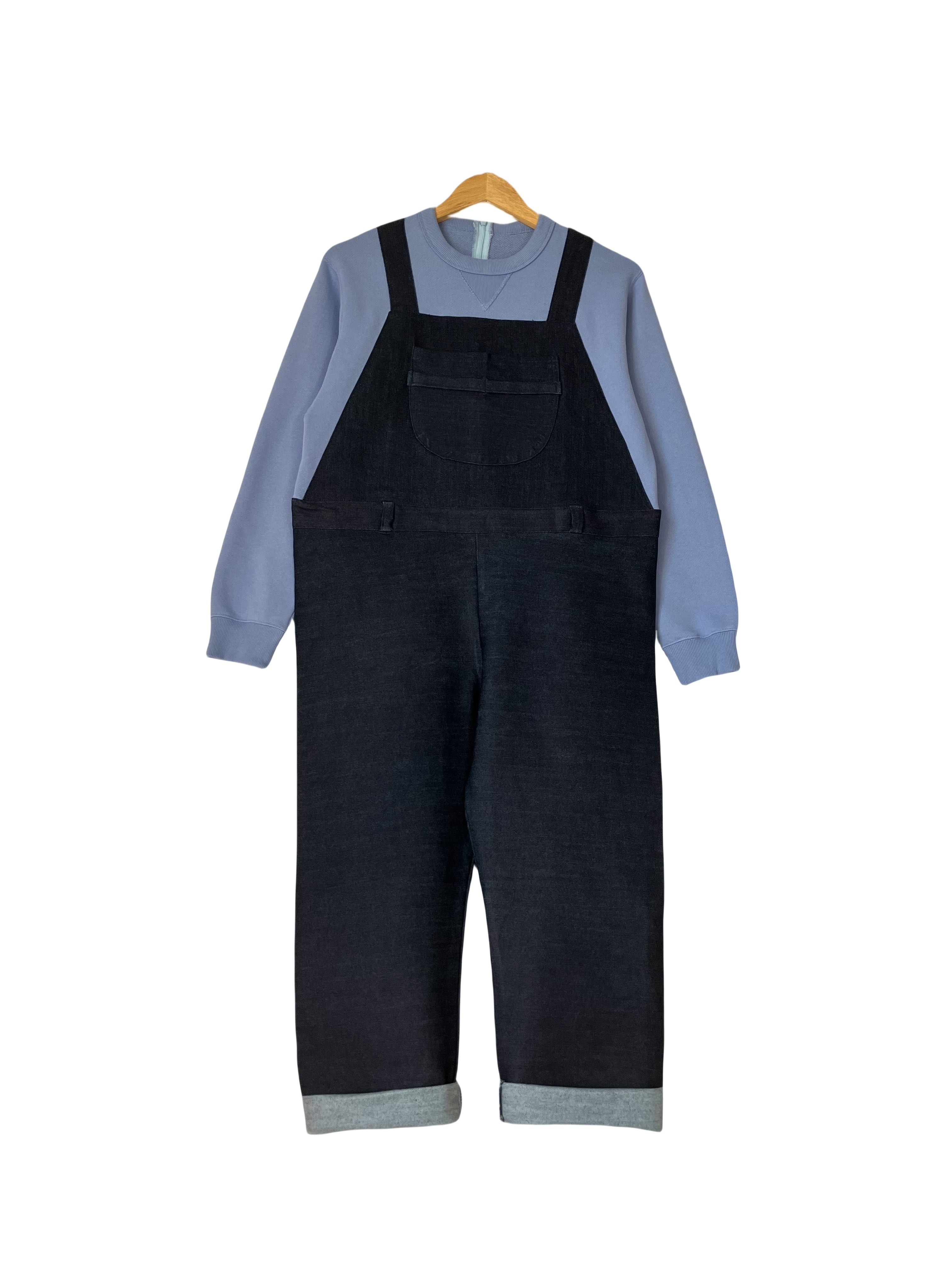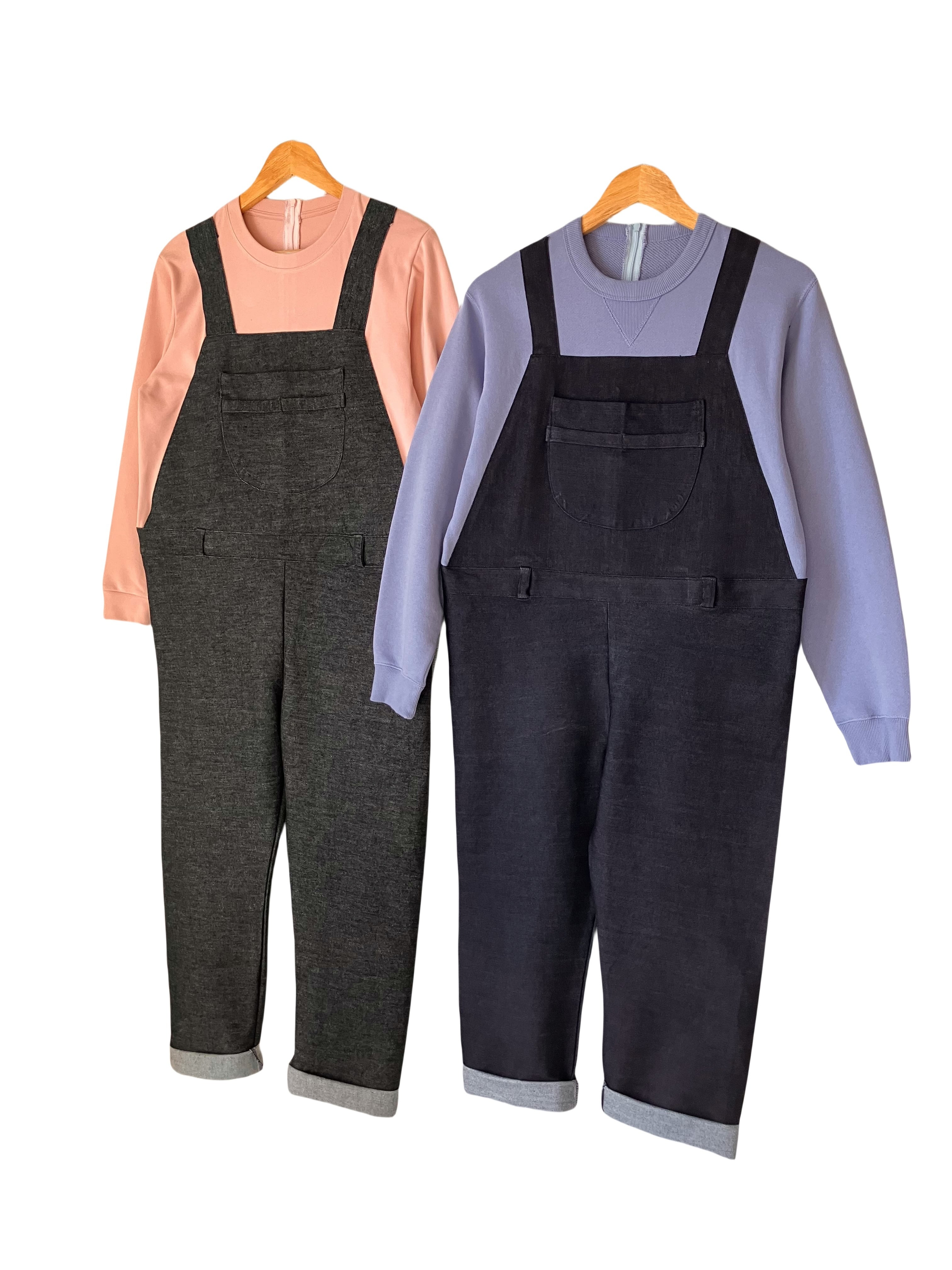 スウェットとオーバーオールを縫い付け一体化する事で、物理的に下半身をさわれないようにしました。