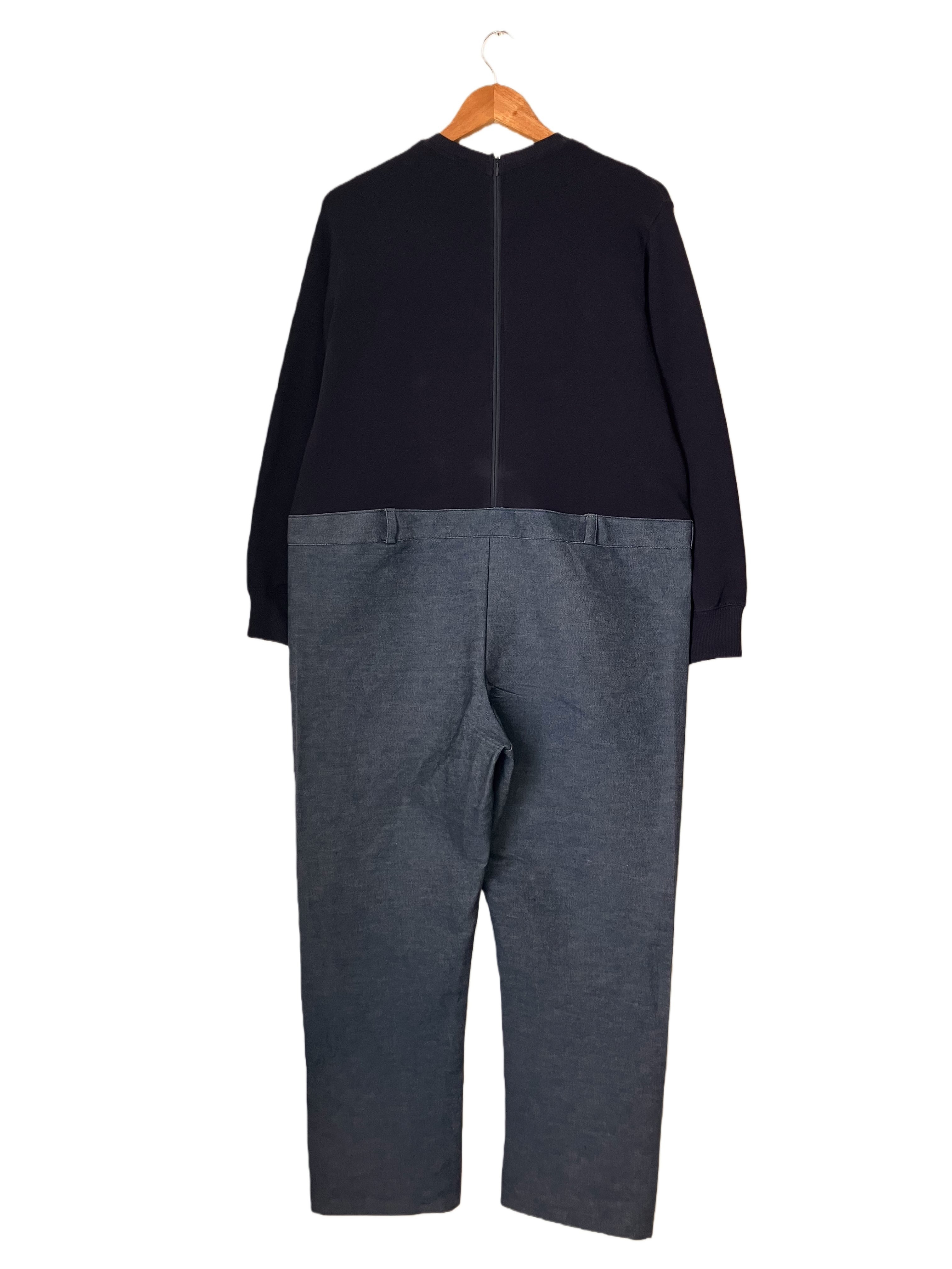 スウェットとオーバーオールを縫い付け一体化する事で、物理的に下半身をさわれないようにしました。