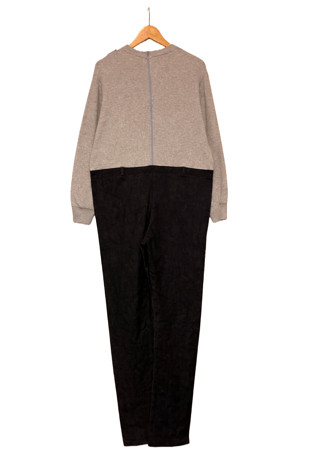 スウェットとオーバーオールを縫い付け一体化する事で、物理的に下半身をさわれないようにしました。