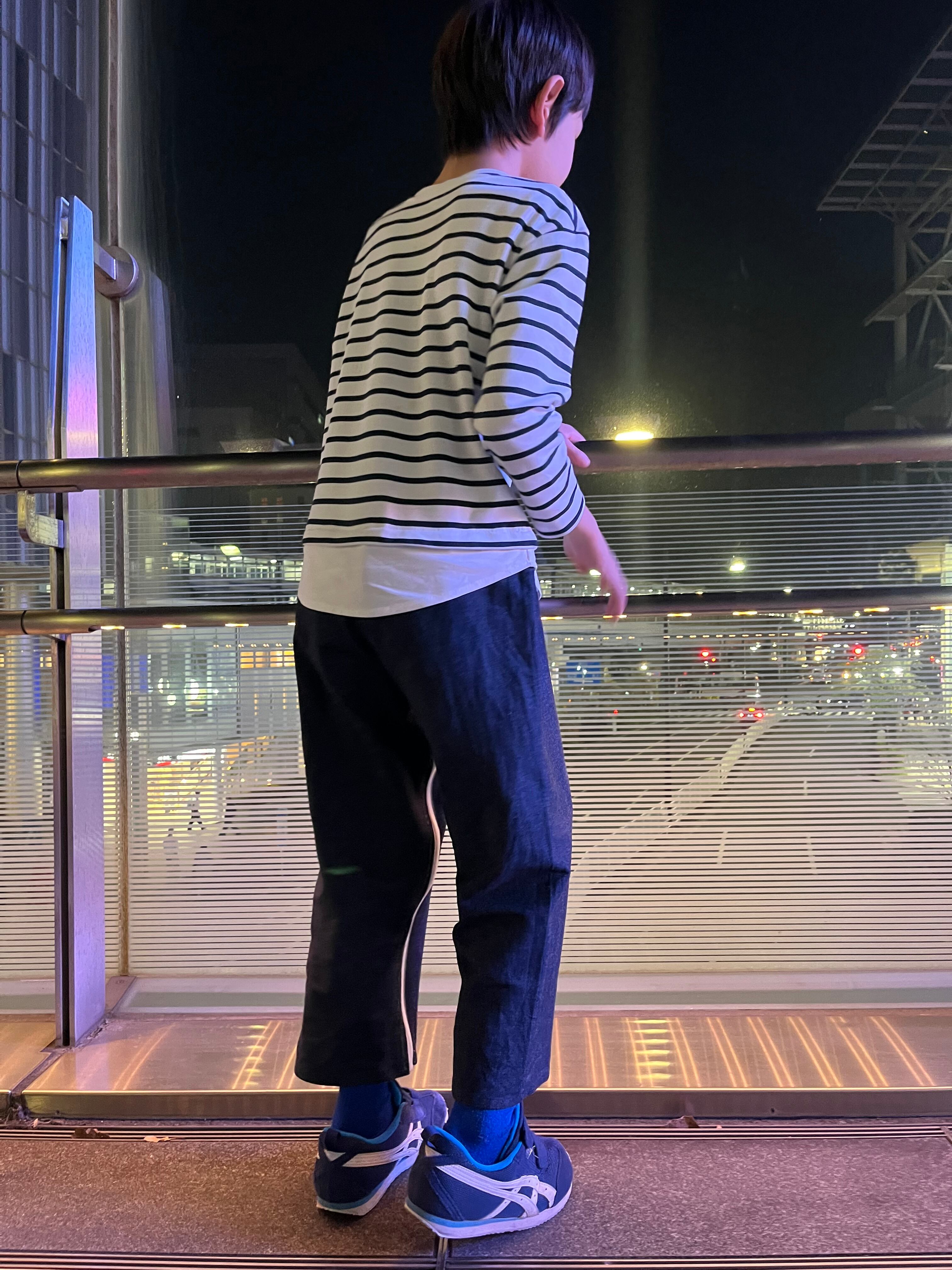 Tシャツとズボンを縫い付け一体化する事で、物理的に下半身をさわれないようにしました。
