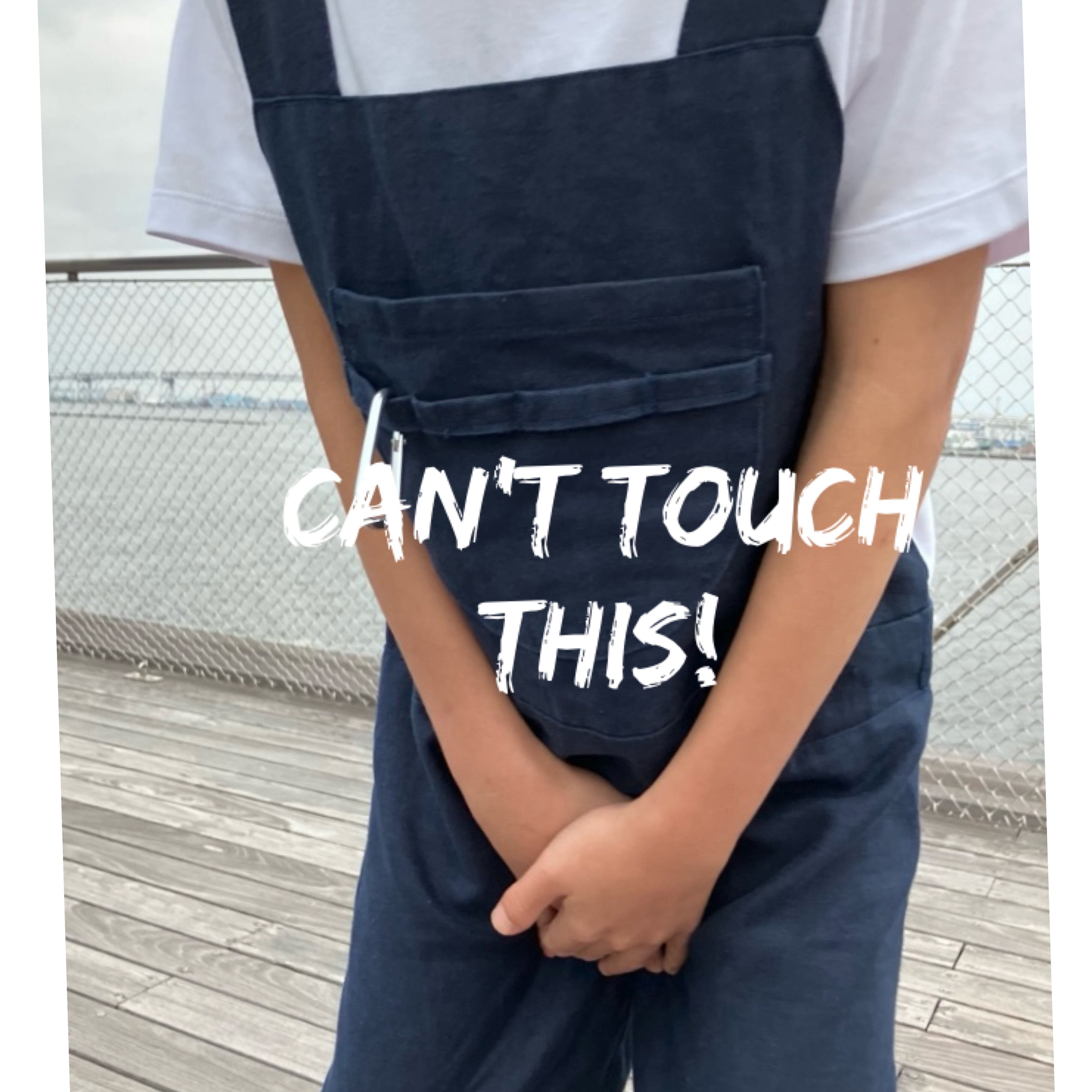 スウェットとオーバーオールを縫い付け一体化する事で、物理的に下半身をさわれないようにしました。